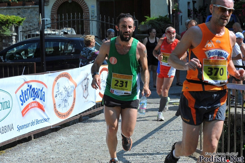 Quest’anno però sono un podista differente, migliore, mentalmente prima che fisicamente e diverso è stato il mio approccio, differenti le mie sensazioni durante la tre campanili.Il risultato è migliore cronometricamente, ho abbassato di 7 minuti il tempo di percorrenza del 2012, chiudendo in 2h03’01” rispetto alle due ore e dieci minuti precedenti, ma sono state le sensazioni, è stato proprio il cammino ad essere più piacevole, anche durante tutta la fatica. Nel primo sentiero, dopo 6 km su strada asfaltata, non subisco come l’anno scorso, canto mentalmente Stairway to heaven, e procedo al mio ritmo accompagnato da una bottiglietta d’acqua. Memore dell’esperienza de 2012, dal primo ristoro fino al traguardo, avrò sempre da bere con me, anche quest’anno fa caldo, e qualche liquido un po’ fresco è un sollievo assoluto nei momenti più duri.